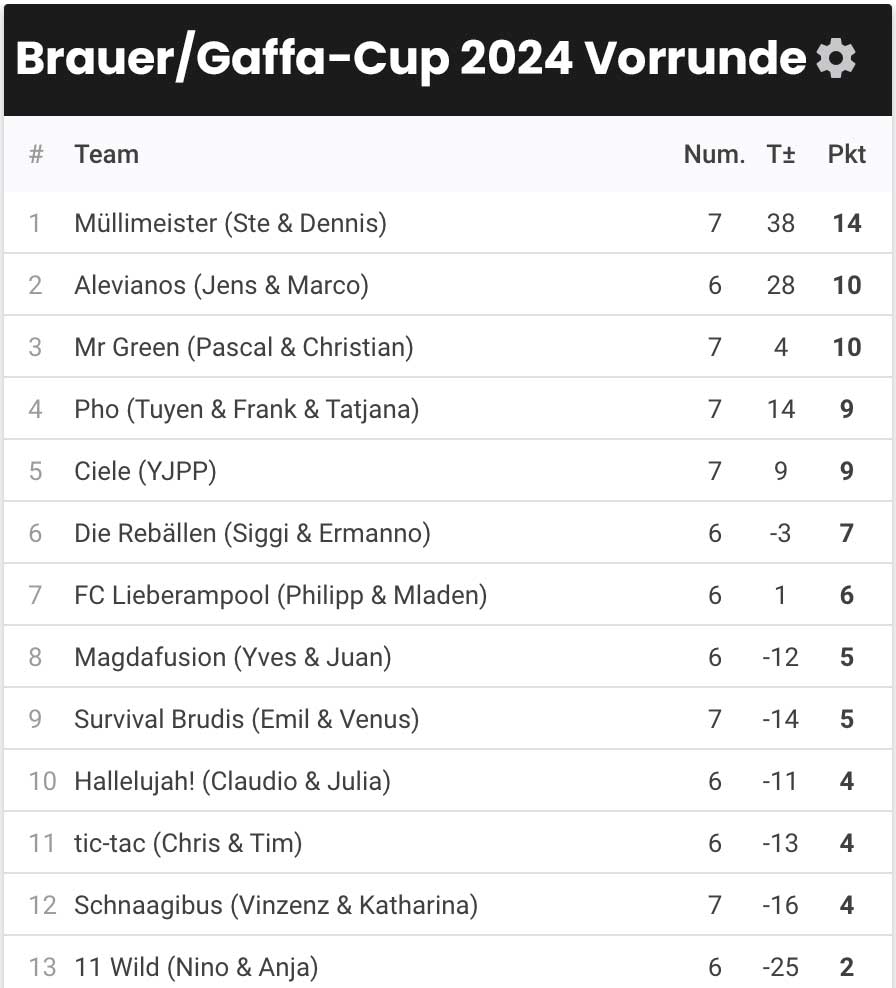 Gaffa/BrauerCup 2024 - Siegerliste
